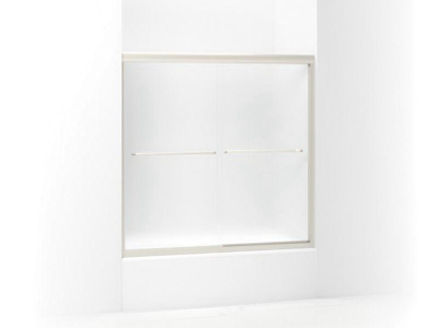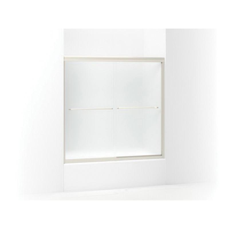 Sterling® 5405-59N-G03 5400 Sliding Bath Door With CleanCoat® Technology, Finesse®, Frameless Frame, Tempered Glass, Nickel with Frosted Glass Pattern, 1/4 in THK Glass, 53-13/16 in H Opening, 54-5/8 to 59-5/8 in W Opening