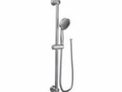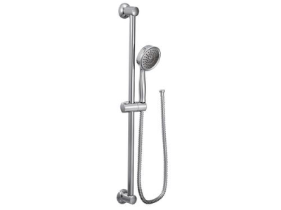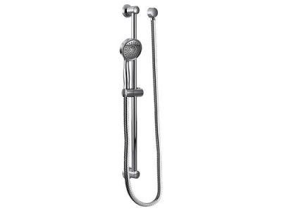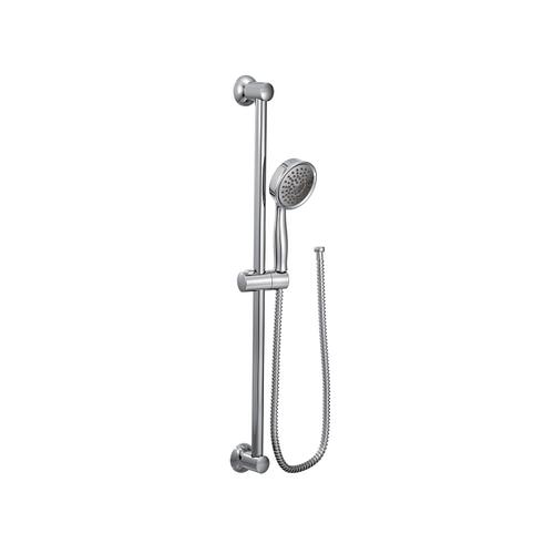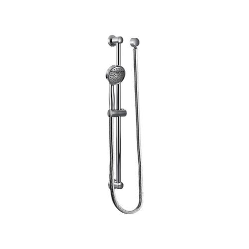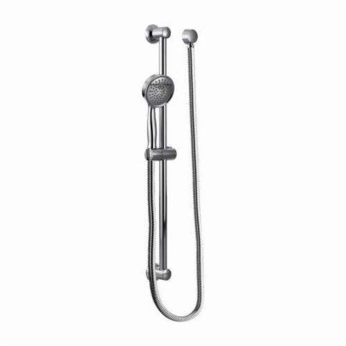 Moen®, 3668EP, Shower, 4-1/4 in Shower Head Diameter, 1-Function Shower Head Patterns, 2 gpm Flow Rate, 69 in Hose Length, Full Body Spray, 80 psi Pressure, Metal Hose, Chrome, 5.88 in W x 33 in D x 3.25 in H Dimensions, With Slide Bar: Yes, Import