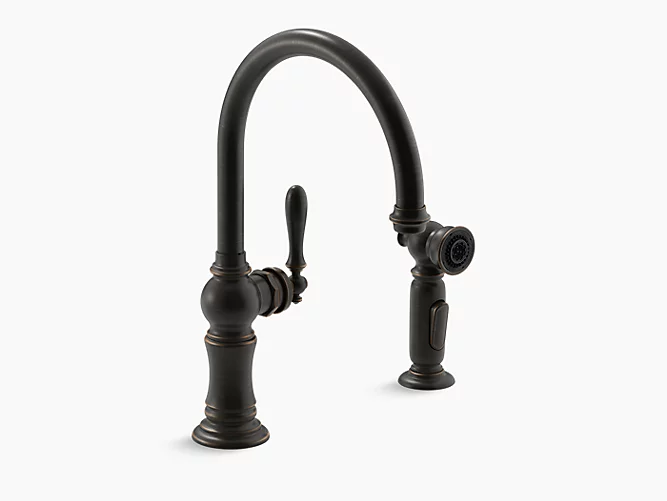 Kohler K-99262-2BZ Artifacts(R) 2-Hole Kitchen Sink Faucet with 14-11/16" Swing Spout and Matching Finish Two-Function Side-Spray with Sweep(R) and BerrySoft(R) Spray, Arc Spout Design - Oil-Rubbed Bronze