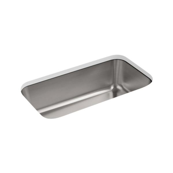 Kohler®, 5290-NA, Kitchen Sink, Undertone® Collection, Rectangular Shape, 29-3/16 in Bowl Length, 15-1/6 in Bowl Width, 9 in Bowl Depth, 1 Bowls, 31-1/4 in L x 17-7/8 in W x 9-5/16 in H Overall, Undermount Mounting, Stainless Steel