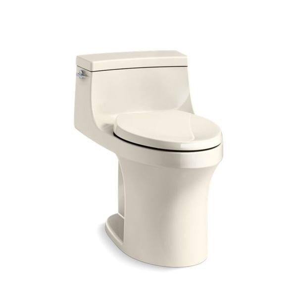 Kohler® 5172-47 Comfort Height® 1-Piece Toilet With Left-Hand Trip Lever, San Souci®, Compact Elongated Bowl, 16-1/2 in H Rim, 12 in Rough-In, 1.28 gpf, Almond