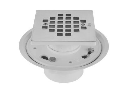 Jaclo® 86564-MBK Contemporary/Modern Square Complete Shower Drain, 2-3/8 in ID x 3 in OD Nominal, 4-1/4 in Dia Stainless Steel Grid, PVC Drain, Domestic