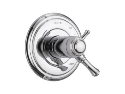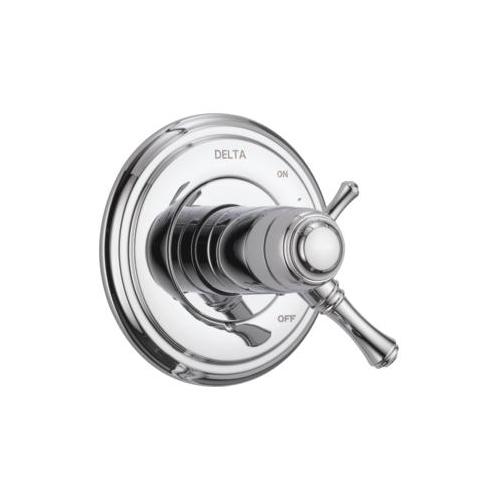 DELTA® Valve Trim, 2-Function, Series: TempAssure® 17T, Cassidy™ Collection, 2.5 gpm Shower Flow Rate, Lever Handle, 7 in Dia Trim, Thermostatic Ceramic Cartridge, 80 psi Pressure, Wall Mounting, For Use With: R10000 Series Universal Rough-In Valve, Solid Brass, Polished Chrome, Domestic
