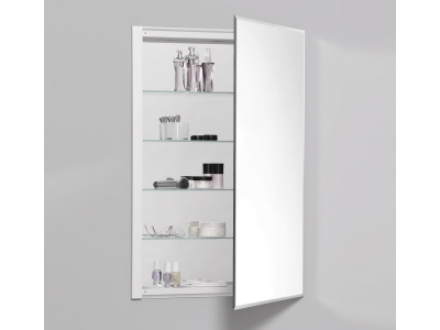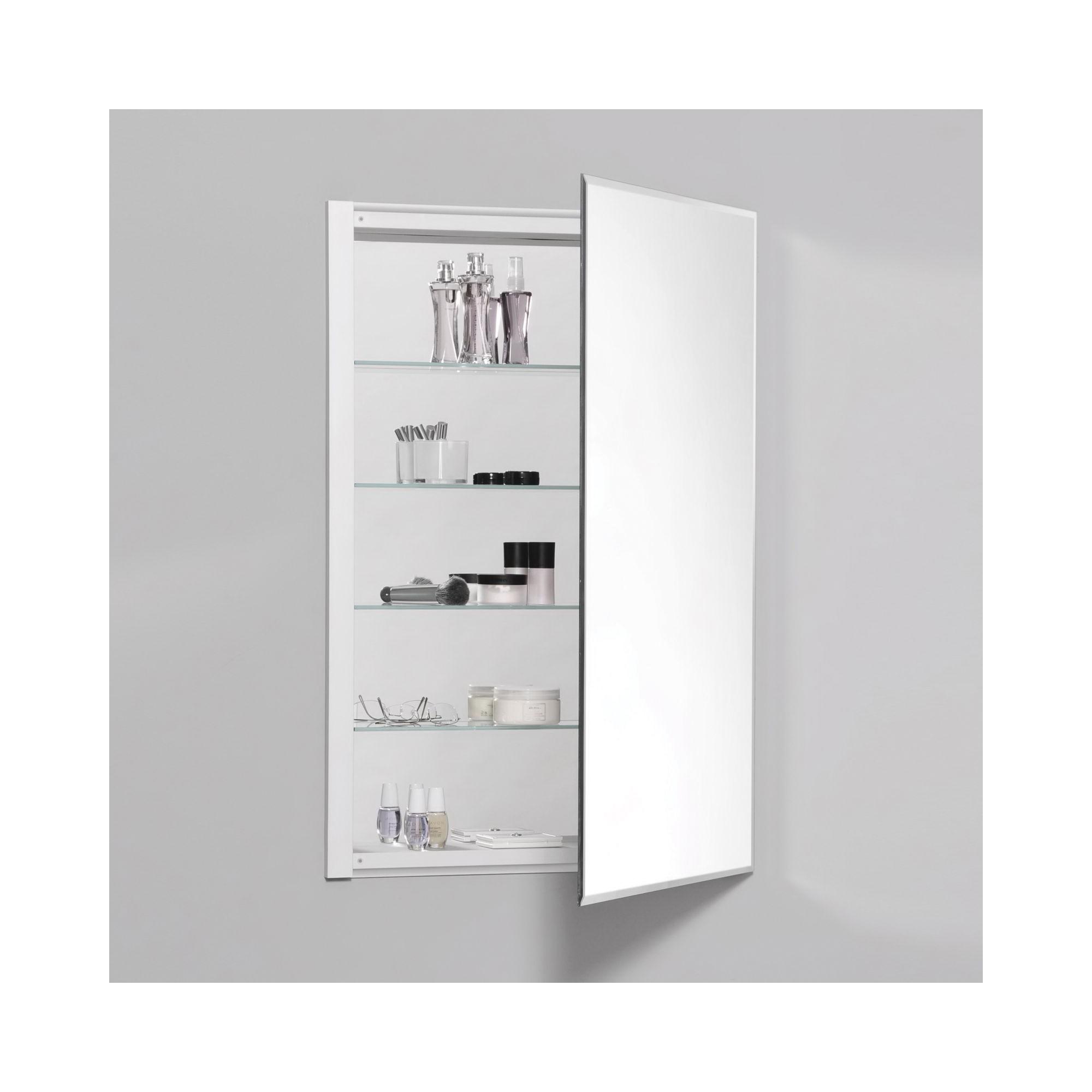 Robern® RC2436D4FB1 Single Door Medicine Cabinet With Interior Beveled Edge Front Mirror, R3 Series, 24 in OAW x 36 in OAH, Aluminum, Satin Anodized