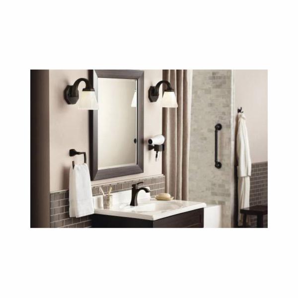 Featuring crisp edges and an elegant design, the MOEN Voss Single Hole Single Handle High-Arc Bathroom Faucet boasts an ageless, yet fashion-forward, presence. Its unique silhouette brings a confident transitional style to your bathroom to accent your overall space. Offering a beautiful oil rubbed bronze finish, this bathroom faucet was built to last and will serve as the perfect complement to your decor.