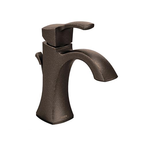 Moen®, 6903ORB, Bathroom Faucet, Series: 6903, Voss™ Collection, 1.5 gpm Flow Rate, Fixed Spout, 4.63 in Spout Reach, 4.68 in Spout Height, Lever Handle, 1 Handles, Metal Pop-Up Drain, 1 Faucet Holes, 3/8 in Connection, Compression Connection, Function: Traditional, 2-1/2 in Maximum Deck Thickness, Deck Mounting, 1255 Duralast® Ceramic Disc, 3 in W x 4.63 in D x 6.69 in H Dimensions, Oil Rubbed Bronze, Domestic