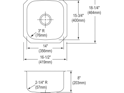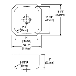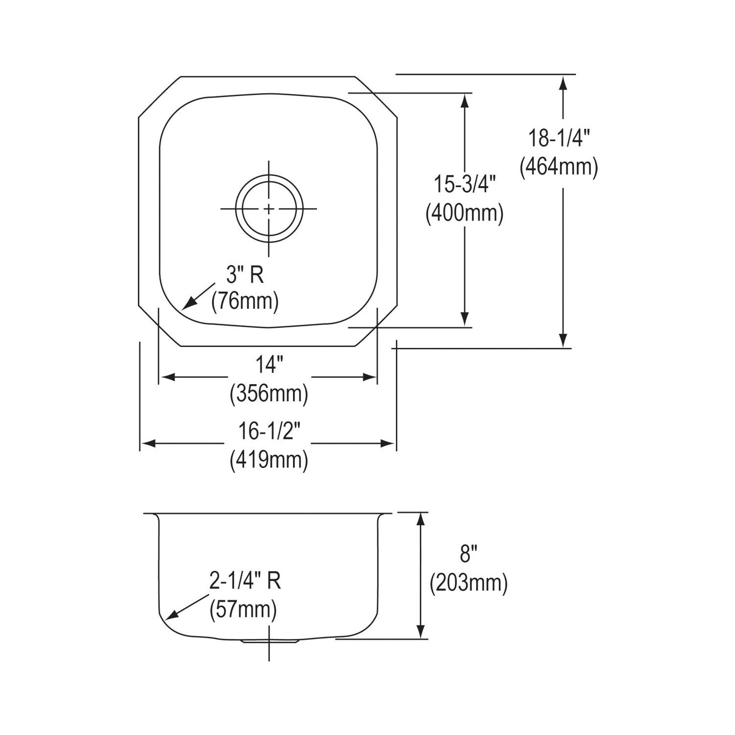 Elkay®, DXUH1618, Bar Sink, Dayton® Collection, Round Shape, 14 in Bowl Length, 15-3/4 in Bowl Width, 8 in Bowl Depth, 3-1/2 in Drain Opening, 1 Bowls, 16-1/2 in L x 18-1/4 in W x 8 in H Overall, Undermount Mounting, Stainless Steel, Radiant Satin, Domestic