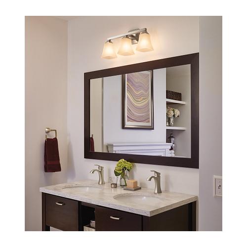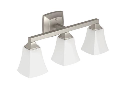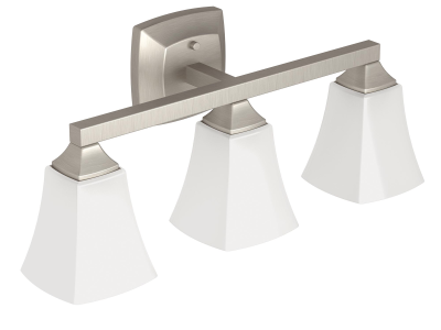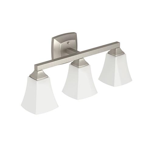 Moen®, YB5163BN, Bath Light, Reversible, Voss™ Collection, 110 V AC, Medium Lamp Base, 100 W Lamp, Wall Mounting, Glass/Zinc Housing Material, Brushed Nickel Housing Finish, 22.05 in W x 7.03 in D x 9.49 in H Dimensions, Import