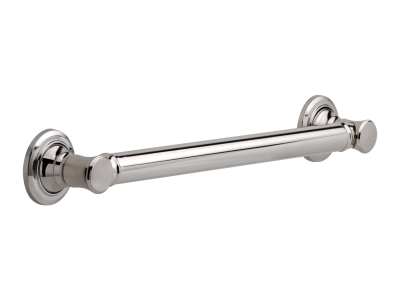 DELTA® Decorative Grab Bar, Traditional, 1-1/4 in Dia, 18 in Length, 3 in Width, 3 in Height, 500 lb, Concealed Mount, Zinc, Polished Nickel, Import