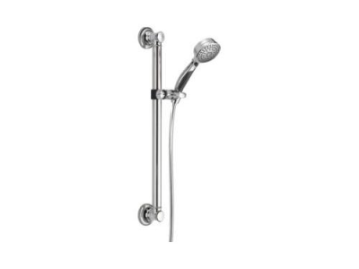 Delta® Decorative Grab/Slide Bars are ADA Compliant. They can be positioned 33 to 36 inches above the finished floor. The bars do not rotate within the fittings and will support up to 500 pounds of force, twice the ADA requirement of 250 pounds of force, when properly installed. A retrievable grab/slide bar wall anchor is also included for ease of removal. Delta is committed to supporting water conservation around the globe and has been recognized as WaterSense® Manufacturer Partner of the Year in 2011, 2013, and 2014. With three spray-selection buttons and a pause feature that allow you to choose up to nine spray settings with a simple, one-handed activation, the ActivTouch® hand shower delivers a new level of innovation to enhance the showering experience. The ActivTouch offers a non-slip, ergonomic grip to help prevent the hand shower from slipping out of the hand while in the shower. The 60”-82” stretchable stainless steel hose option offers maximum flexibility. The impact-resistant spray face offers durability for years to come while the internal double-check valve offers peace of mind with back-flow protection. Innovative Pause feature allows you to conserve water while lathering up.