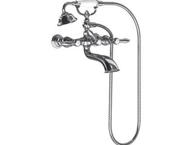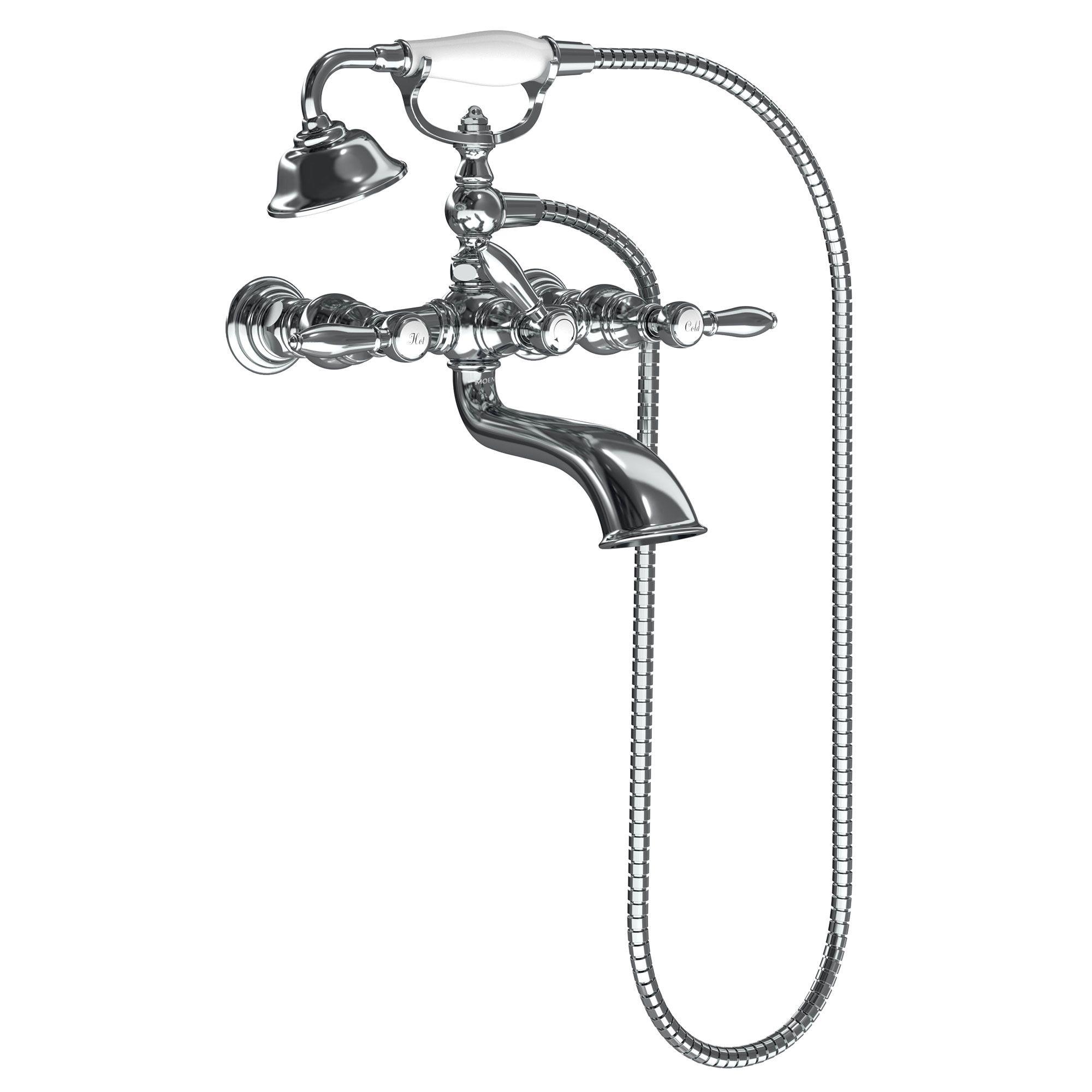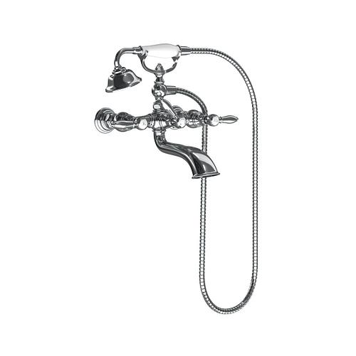 Moen®, S22110, Tub Filler Faucet, Wall Mount, Series: S22110, Weymouth™ Collection, 2 gpm Flow Rate, 8 in Center Distance, 9 in Spout Reach, 59 in Hose, Metal Lever Handle, 2 Handles, 2 Faucet Holes, 3/4 in Connection, MNPT Connection, Hand Shower: Yes, 14.13 in W x 9 in D x 11.25 in H Dimensions, Chrome, Import