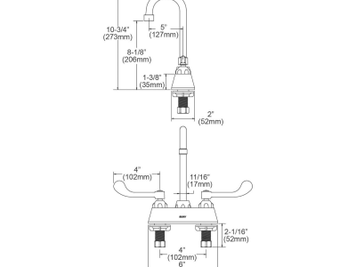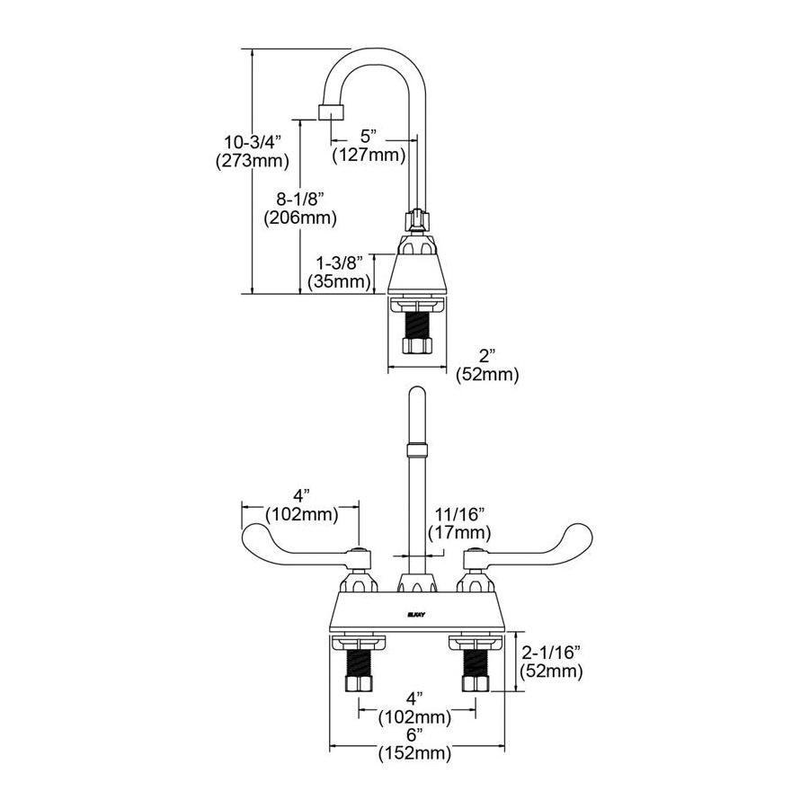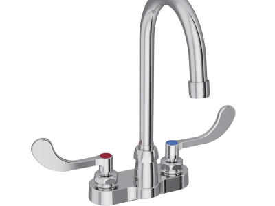 Elkay® Centerset Bathroom Faucet, 1.5 gpm, 4 in Center Distance, Gooseneck Spout, 5 in Spout Reach, 8-1/8 in Spout Height, Wrist Blade Handle, 2 Handles, 2 Faucet Holes, 1/2 in, Male NPSM, Deck Mount, 1/4 Turn Ceramic Disc Cartridge Valve/Cartridge, 6 in L x 10-3/4 in H, Solid Brass, Polished Chrome, Import, Commercial