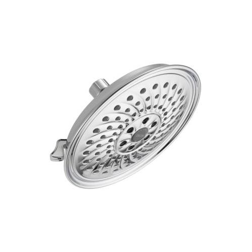 DELTA® Raincan Shower Head, 3-Setting, 2 gpm Flow Rate, 1/2 in IPS Connection, Round Shape, 3 Sprays, Spray Pattern: Full Body/H2OKinetic®/Pause, 80 psi Pressure, 8-1/4 in Dia Head, 3-1/2 in Overall Height, ABS, Polished Chrome, Import