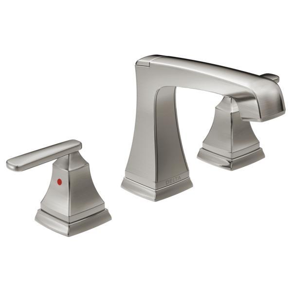 DELTA® Widespread Lavatory Faucet, Ashlyn® Collection, 1.5 gpm Flow Rate, 4 to 16 in Center Distance, Rigid Spout, 5-1/8 in Spout Reach, 4-1/8 in Spout Height, Lever Handle, 2 Handles, Pop-Up Drain, 3 Faucet Holes, 3/8 in Connection, Compression Connection, 2-1/2 in Maximum Deck Thickness, Deck Mounting, DIAMOND™ Seal Valve, 5-1/4 in H Dimensions, Brass, Stainless Steel, Commercial Commercial/Residential