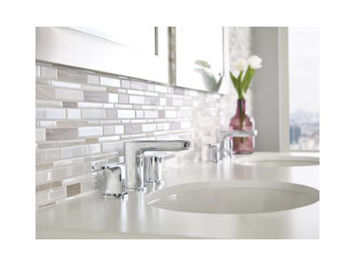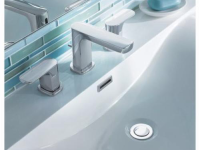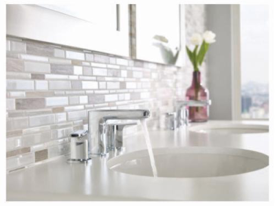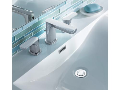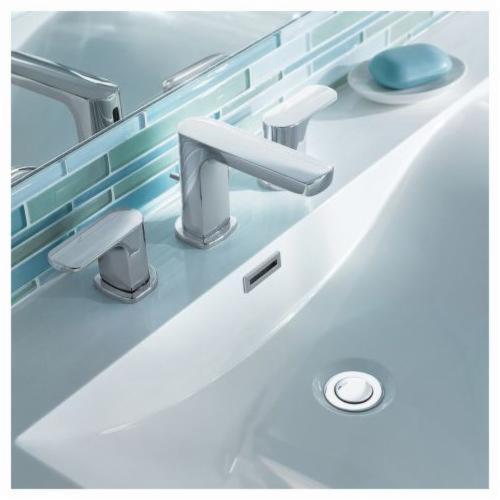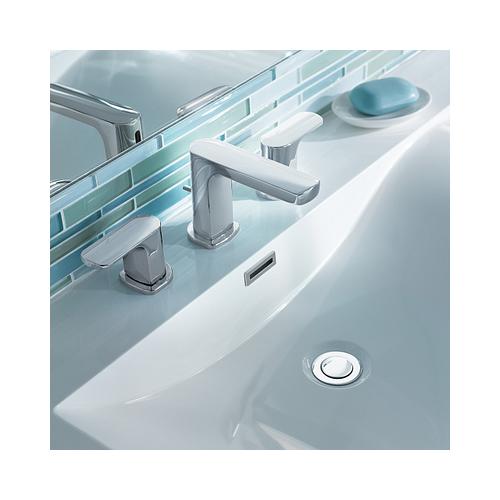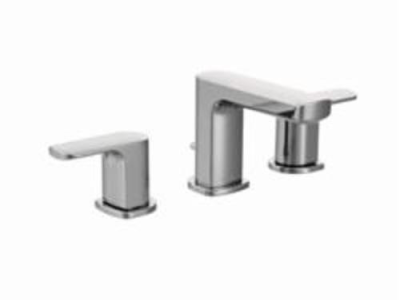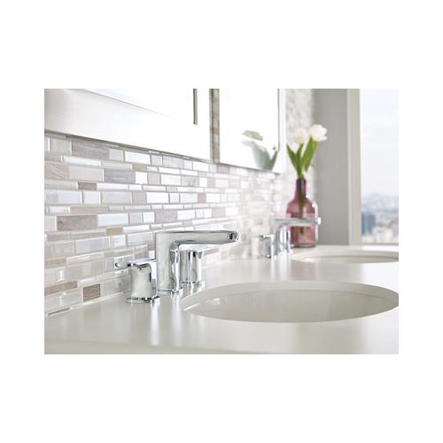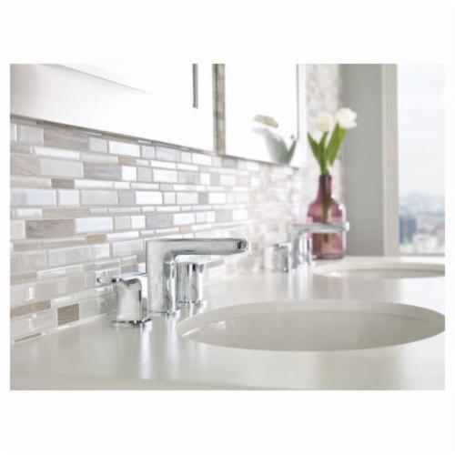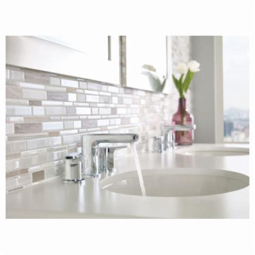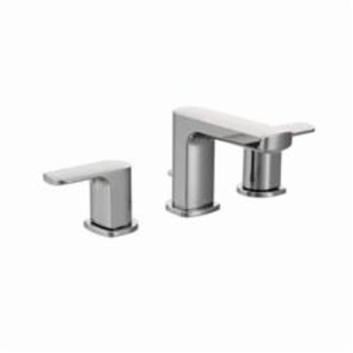 Moen®, T6920, Bathroom Faucet, Rizon™ Collection, 1.5 gpm Flow Rate, 8 to 16 in Center Distance, Fixed Spout, 4.63 in Spout Reach, 3-1/2 in Spout Height, Lever Handle, 2 Handles, Pop-Up Drain, 3 Faucet Holes, 1/2 in Connection, IPS Connection, 2-1/4 in Maximum Deck Thickness, Deck Mounting, 1224 Ceramic Disc Cartridge, 14 in W x 6.36 in D x 4.33 in H Dimensions, Metal, Chrome, Import