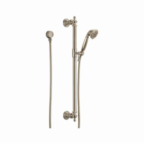 Brizo® Hand Shower, Tranditional, Baliza® Collection, 3 Shower Head Patterns, 2 gpm Flow Rate, 60 to 82 in Hose Length, H2Okinetic®/Massage/Pause Spray, 80 psi Pressure, 1/2-14 NPSM Connection, Metal Hose, Plastic, Brushed Nickel, 10 in H Dimensions, With Slide Bar: Yes, Import