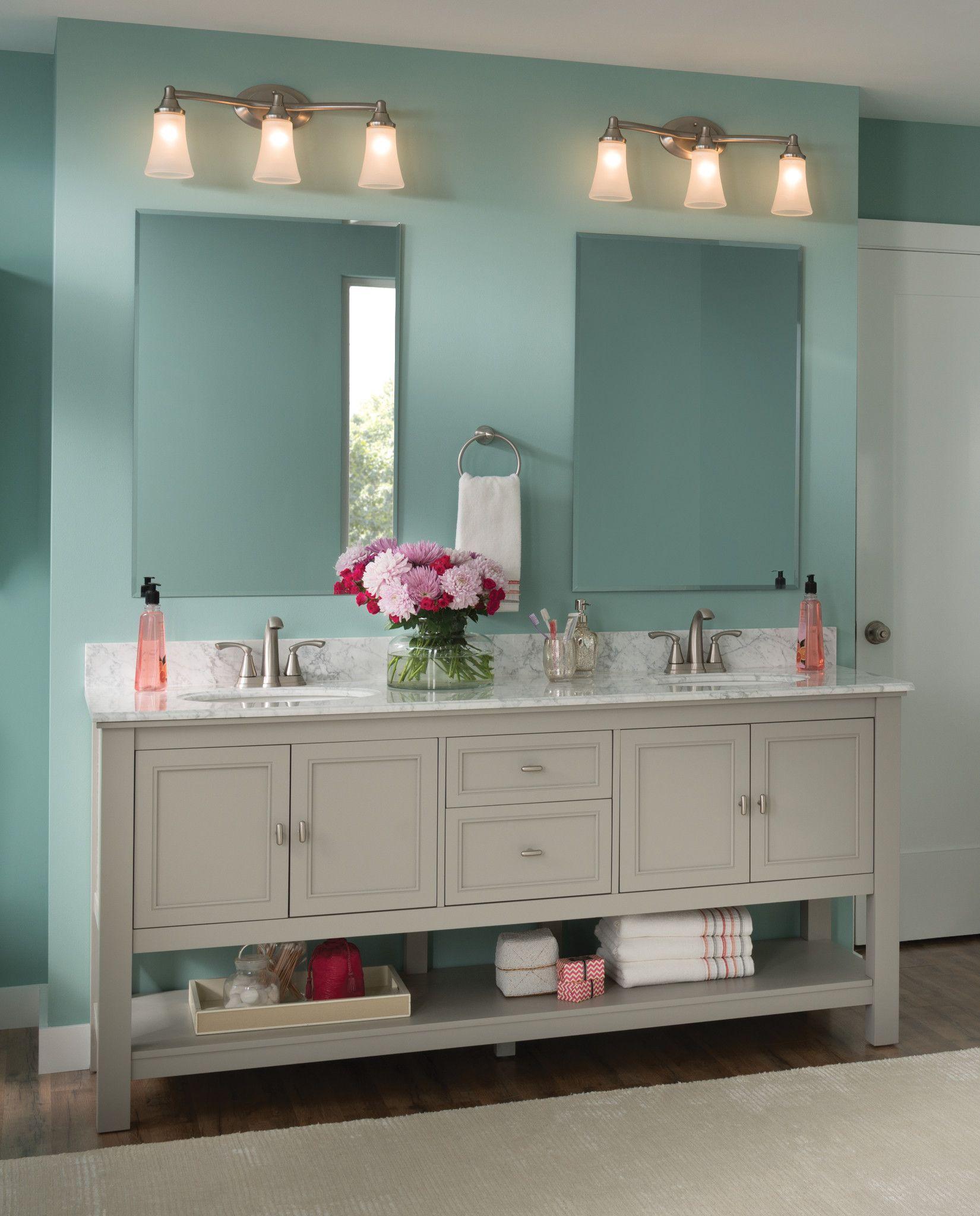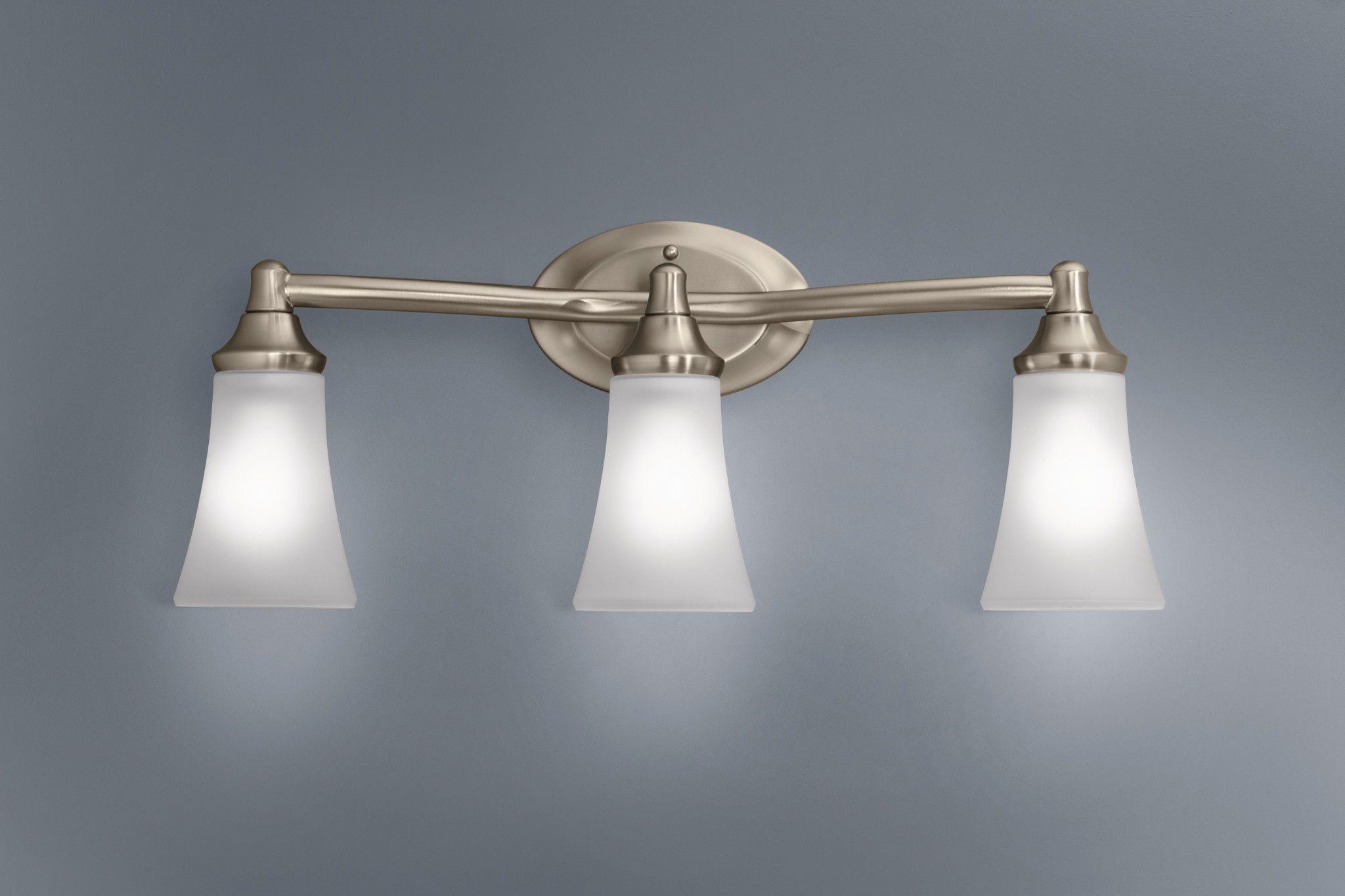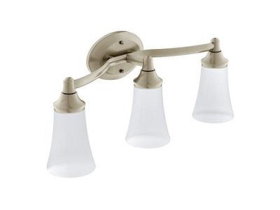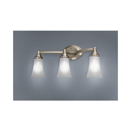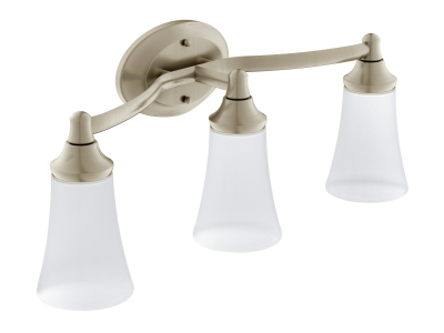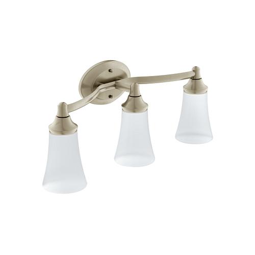 Moen®, YB2863BN, Bath Light, Eva® Collection, 120 V AC, Medium Lamp Base, 100 W Lamp, Wall Mounting, Glass/Zinc Housing Material, Brushed Nickel Housing Finish, 20.6 in W x 10 in D x 9.6 in H Dimensions, Import