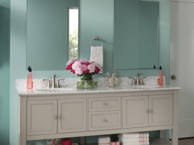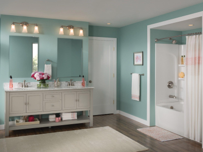 With flowing curves, the Eva collection's transitional design is pure and organic. Petal like handles and swan like spout bring a relaxed feeling to the bath. Complete the look of a perfectly matched bath with an elegant and stylish lighting fixture.