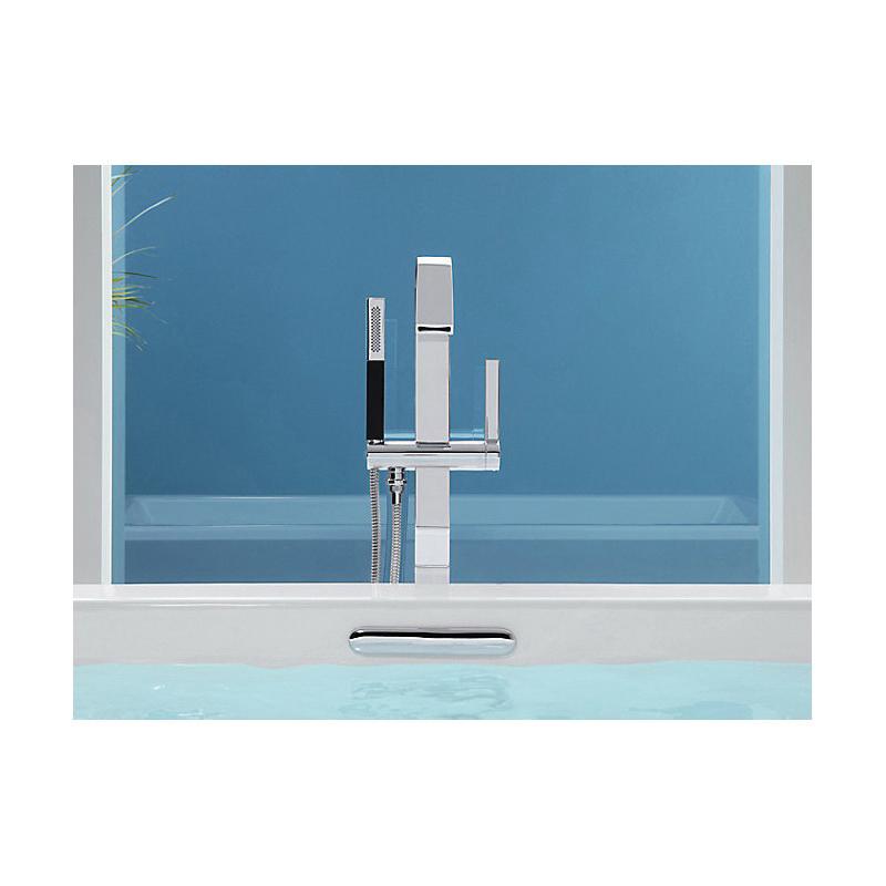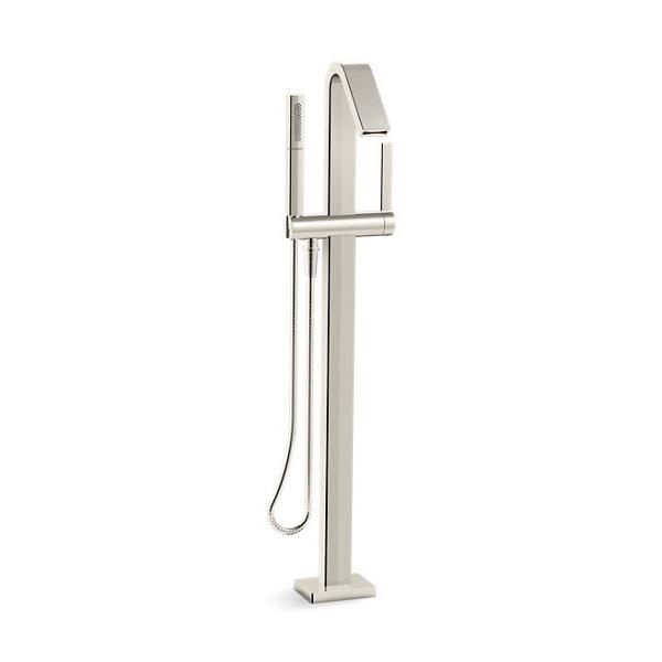 Kohler® Bath Filler Trim, Floor Mount, Loure®, 7 gpm, Fixed Spout, 6-9/16 in Spout Reach, 34-3/4 to 35-9/16 in Spout Height, 60 in L Hose, Lever, 1 Handles, 1 Faucet Holes, 1/2 in, NPT, Hand Shower Yes/No: Yes, Ceramic Disc Valve/Cartridge, 39-5/16 in H, Metal, Vibrant® Polished Nickel