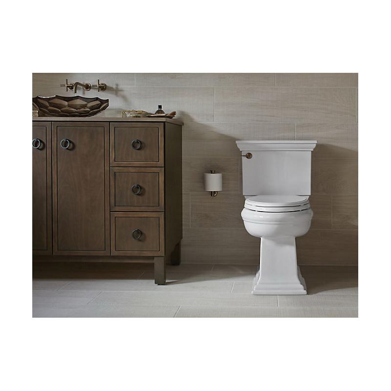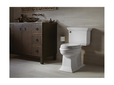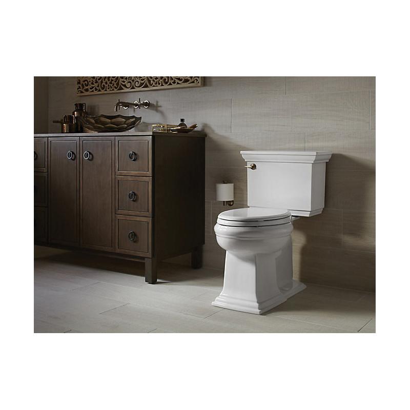 Featuring the elegant architectural Memoirs Stately look of the KOHLER® Memoirs collection with Stately design, this two-piece elongated toilet combines water-saving flush performance with traditional style. A high-efficiency 1.28-gallon flush offers up to 16,500 gallons of water savings per year, compared to a 3.5-gallon toilet, without compromising performance. The elongated bowl is positioned at a convenient height for comfort and ease of use. A concealed trapway simplifies cleaning.