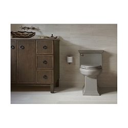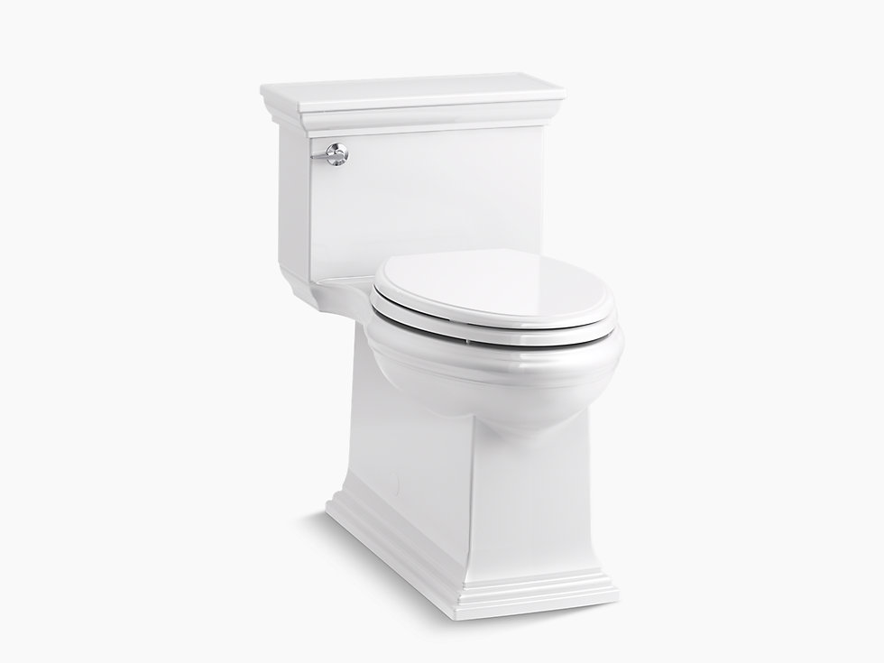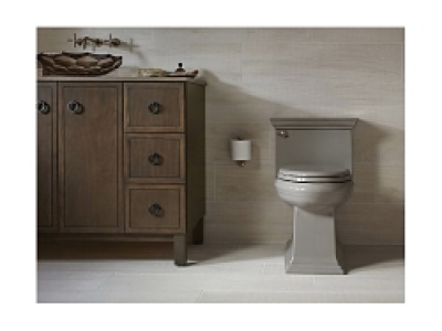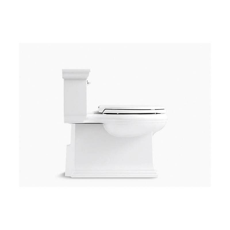 Inspired by elegant architecture and featuring crisp lines, this Memoirs KOHLER® Memoirs Stately collection one-piece elongated toilet with Stately design delivers functionality and water savings--as well as traditional style. A high-efficiency 1.28-gallon flush offers up to 16,500 gallons of water savings per year (versus a 3.5-gallon toilet) without sacrificing performance. The included seat, positioned at chair height for your comfort, features technology for noiseless closing and easy cleaning.