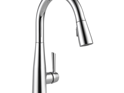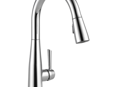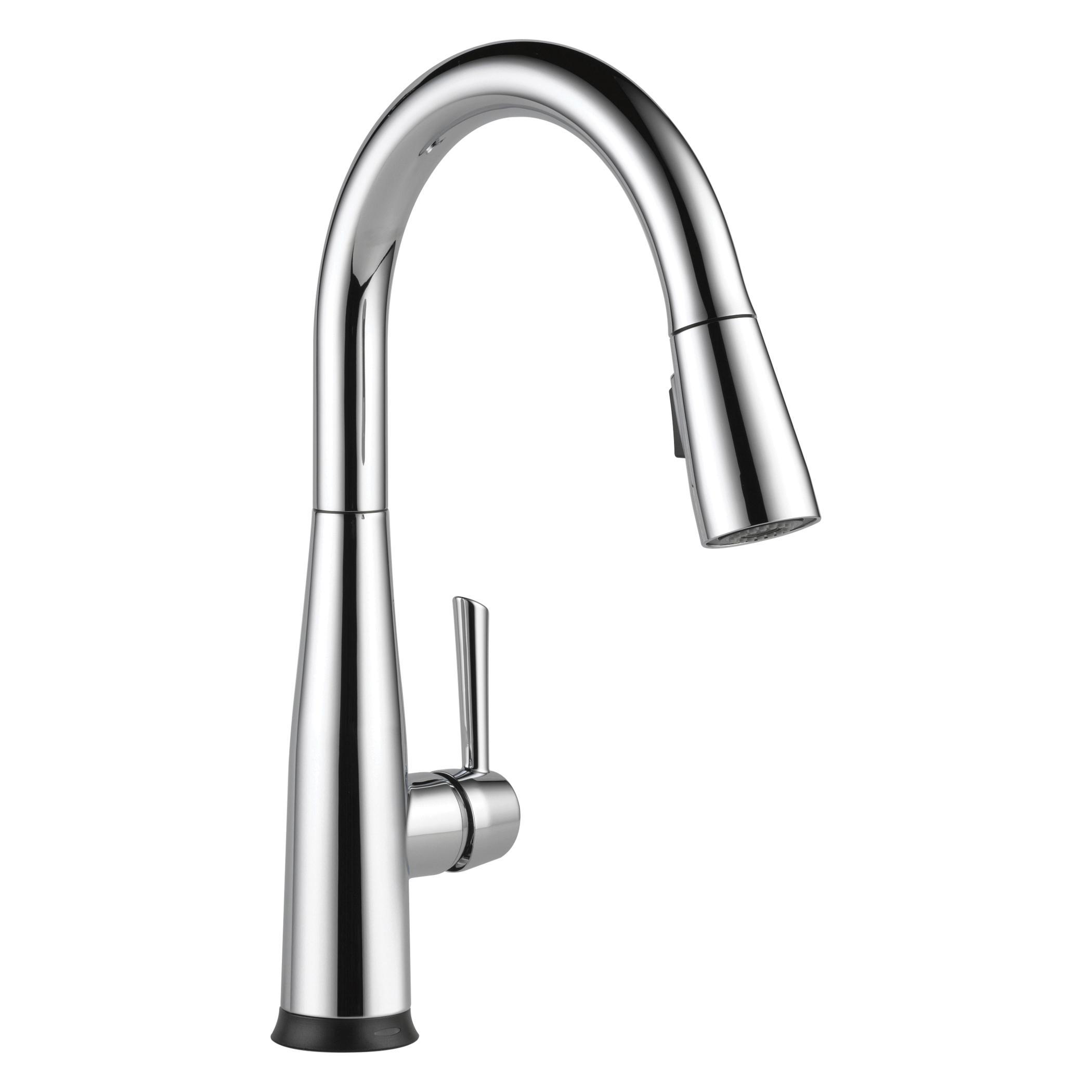 DELTA® Kitchen Faucet, Pull-Down, Series: Touch2O®, Essa® Collection, 1.8 gpm Flow Rate, 8 in Center Distance, Swivel Spout, 9-1/4 in Spout Reach, 15-3/4 in Spout Height, Lever Handle, 1 Handles, 1 Faucet Holes, 1-1/4 to 1-1/2 in Faucet Hole, 3/8 in Connection, Compression Connection, Function: Traditional, 2-1/2 in Maximum Deck Thickness, Deck Mounting, Electronic with Euro-Motion DIAMOND™ Seal Valve, Metal, Polished Chrome