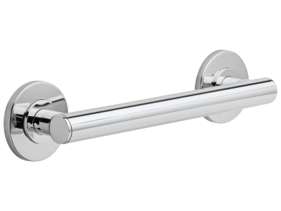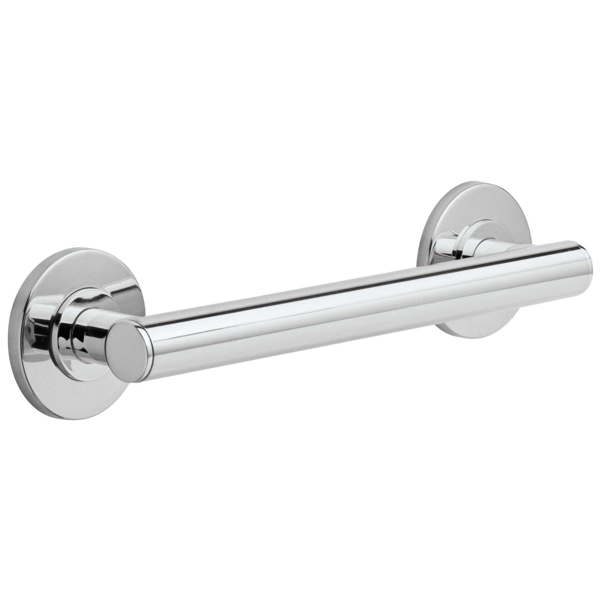 DELTA® Decorative Grab Bar, Round Contemporary, 1-1/4 in Diameter, 12 in Length, 2-3/4 in Width, 3-1/2 in Height, 500 lb Load, Concealed Mounting, Stainless Steel, Polished Chrome, Import
