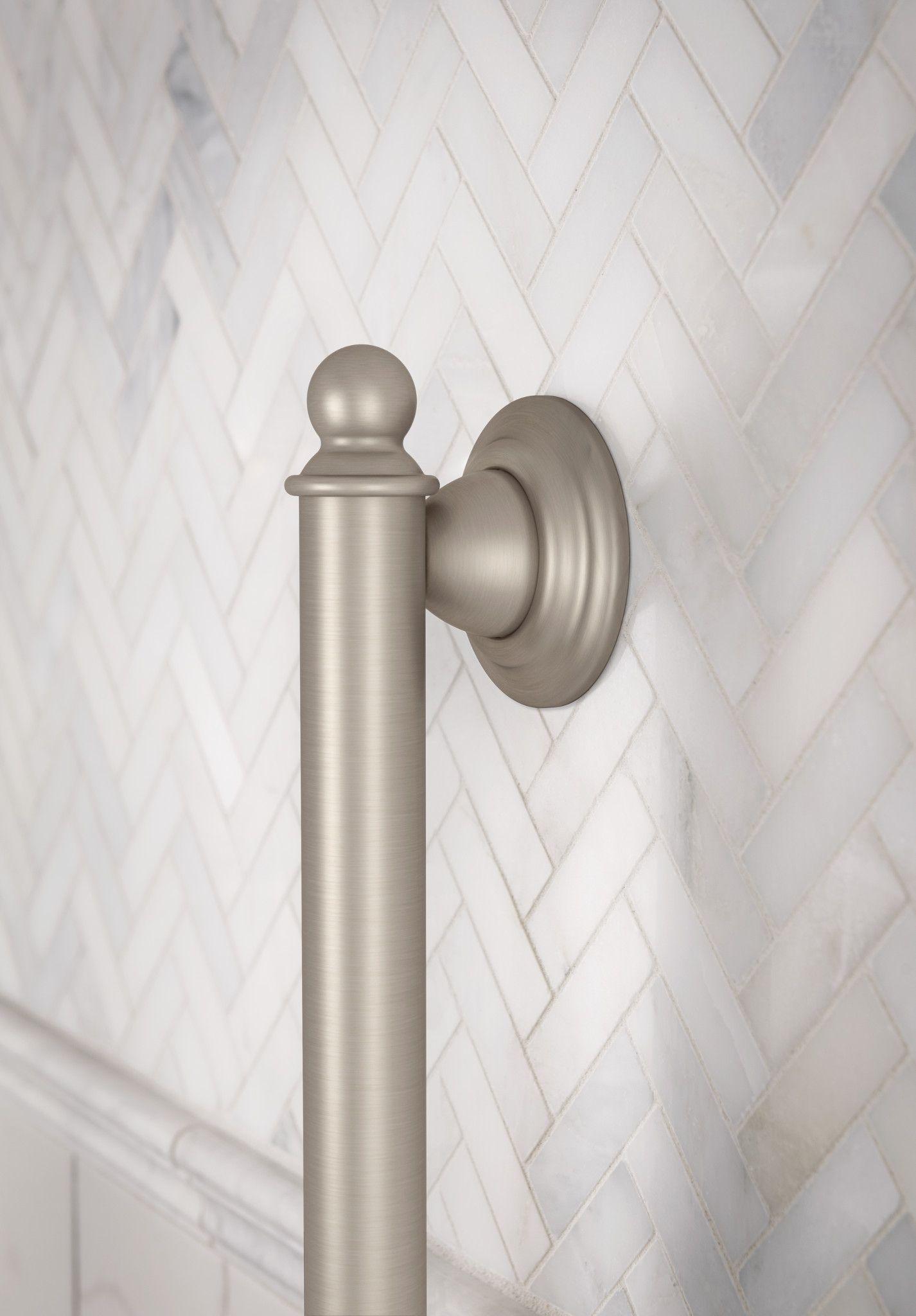 Moen®, YG2218BN, Grab Bar, Brantford™ Collection, 1-1/4 in Diameter, 18 in Length, 22.58 in Width, 2.8 in Height, 500 lb Load, Wall Mounting, Stainless, Brushed Nickel, Import