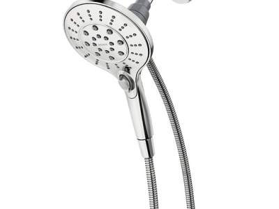 Inspired by patterns found in nature, the Moen Engage Magnetix Showerhead offers a distinctive design that is at home in any decor. The chrome finish is highly reflective for a mirror-like look that works with any decorating style. The large, 5.5-inch diameter removable spray head provides maximum water coverage. Customize your shower at the push of a button by clicking through 6 optimized settings. Magnetix docking allows for easy release and return with the magnetic docking system, even with your eyes closed. This showerhead always docks facing forward to avoid exterior splashing outside your shower. Includes a kink-free metal hose that extends reach and flexibility.