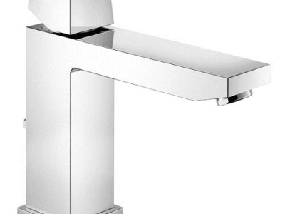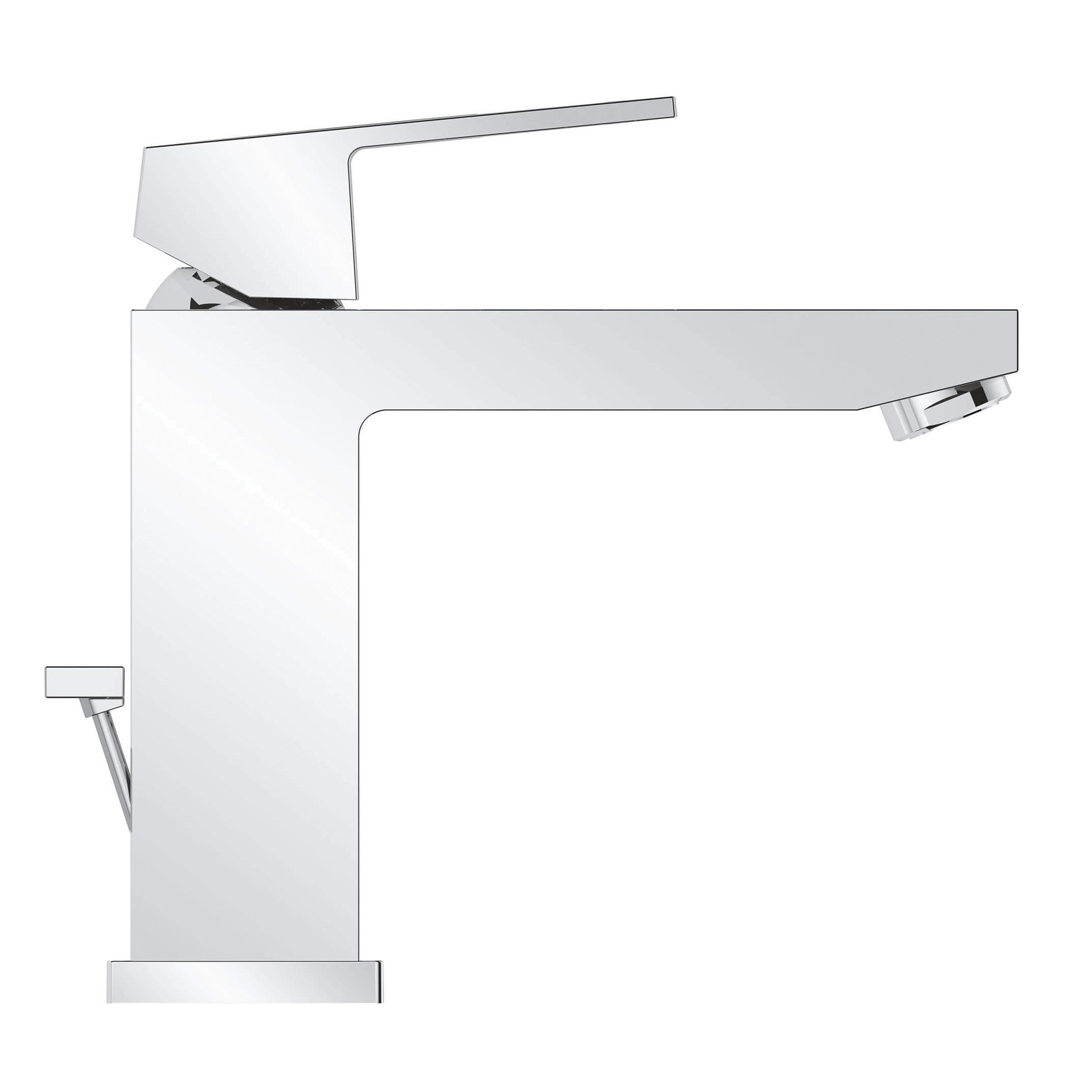 GROHE 23670000 Eurocube® Centerset Lavatory Faucet With Temperature Limiter, 1.5 gpm Flow Rate, 4.313 in H Spout, 1 Handles, Pop-Up Drain, 1 Faucet Holes, StarLight® Polished Chrome, Function: Traditional