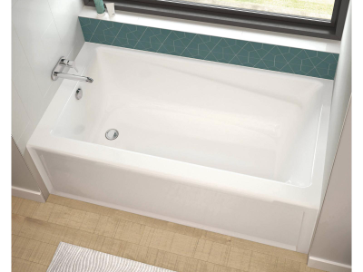 project, at an affordable price. This tub features a beautifully designed integral apron for a polished look and tiling flanges on three sides for a safer water management and ease of installation. The Exhibit IFS is available in both standard and with the Above-the-Floor Rough (AFR) feature: a few additional inches between the tub floor and the bathroom floor. This gap allows you to change a previously existing drain position without breaking your floors or a sweat. This model is designed with minimalism in mind with its clean lines and modern look. Its spacious interior offers discreet integrated armrests for additional comfort and a 68 degrees angled backrest for a relaxing experience. Choosing the MAAX Exhibit is choosing comfort, and peace of mind for years to come.