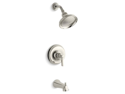 Inspired by early 1900s American design, Bancroft® faucets combine vintage style with durable construction. This bath and shower trim includes a showerhead with Katalyst™ air-induction spray. By infusing two liters of air per minute, Katalyst™ delivers a powerful, voluptuous spray that clings to the body with larger, fuller water drops. Pair this trim with a Rite-Temp® pressure-balancing valve, which maintains your desired water temperature during pressure fluctuations.