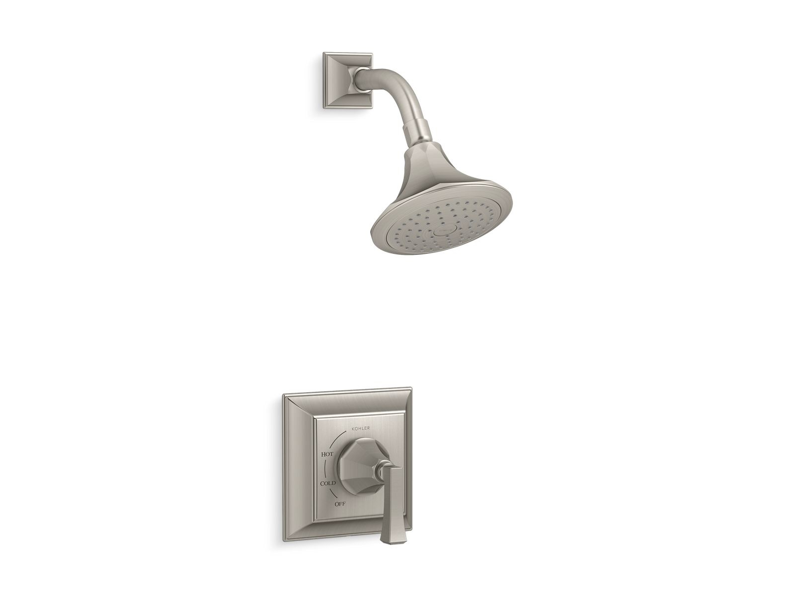Kohler® Shower Valve Trim, Memoirs® Rite-Temp®, 2.5 gpm Shower Flow Rate, 1 Handles, Deco Lever, 6 in W x 4 in D Trim, Hand Shower Yes/No: No, 80 psi, Wall Mount, Metal, Vibrant® Brushed Nickel