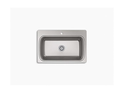 Kohler®, 20060-1-NA, Kitchen Sink, Verse™ Collection, Rectangular Shape, 29-7/16 in Bowl Length, 15-11/16 in Bowl Width, 9 in Bowl Depth, 3-3/4 in Drain Opening, 1 Faucet Holes, 1 Bowls, 33 in L x 22 in W x 9-5/16 in H Overall, Top Mounting, Stainless Steel