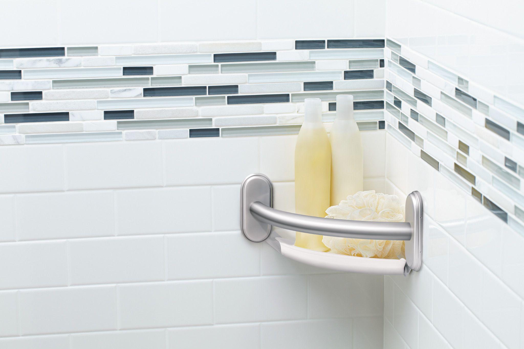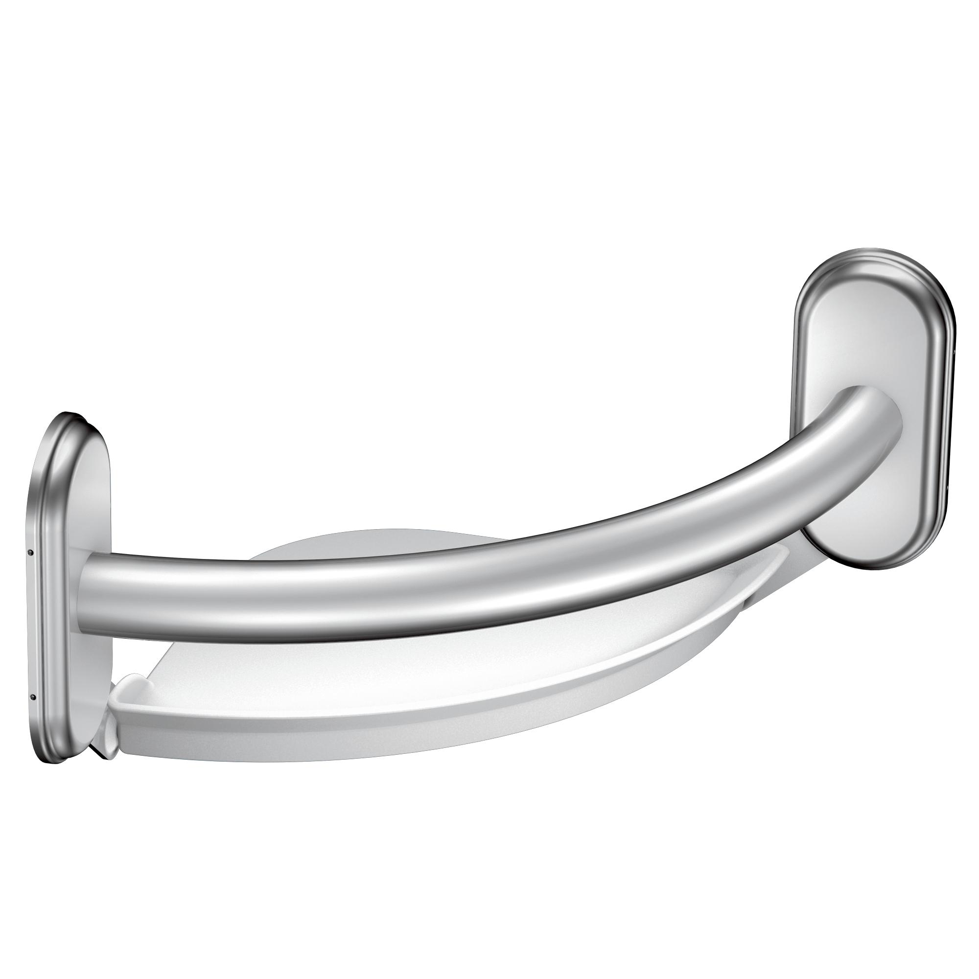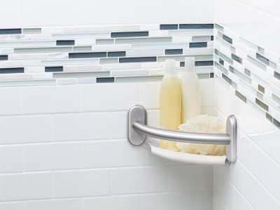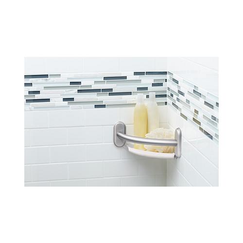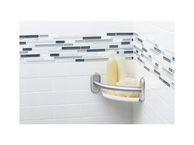 The Designer Corner Shelf with Grab Bar combines security and convenience with style and sophistication. The multi-function design allows you to increase safety while reducing clutter in the bathroom. The sleek look of this grab bar will enhance any decor providing additional storage in the shower.