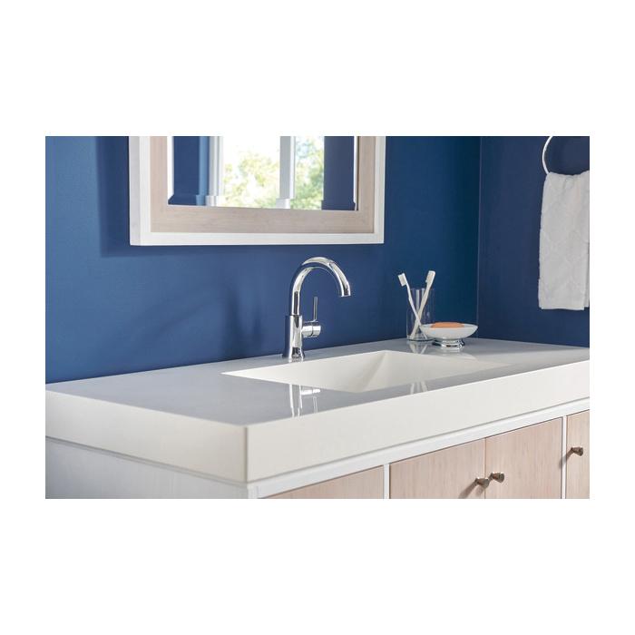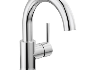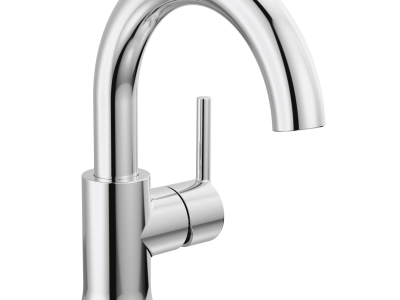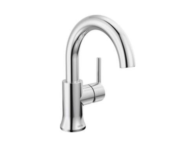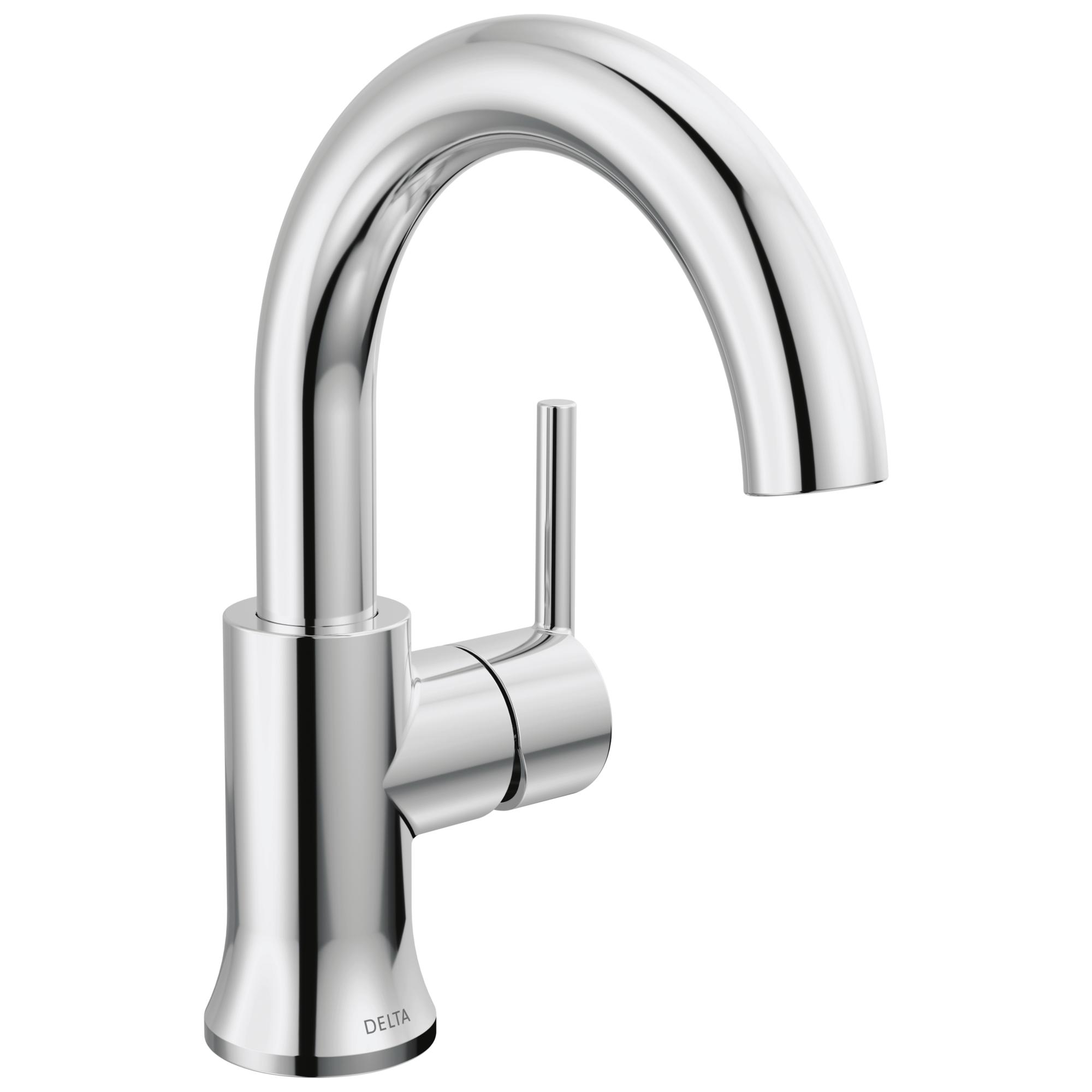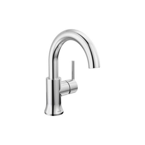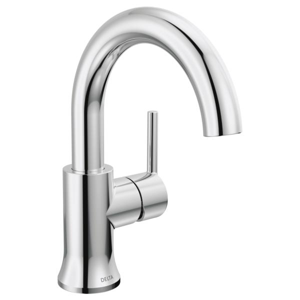 DELTA® Lavatory Faucet, Trinsic® Collection, 1.2 gpm Flow Rate, High-Arc Spout, 5-9/16 in Spout Reach, 5-3/4 in Spout Height, Lever Handle, 1 Handles, Push Pop-Up Drain, 1 Faucet Holes, 3/8 in Connection, Compression Connection, Function: Traditional, 3 in Maximum Deck Thickness, Deck Mounting, DIAMOND™ Seal Valve, 8-7/8 in H Dimensions, Brass, Polished Chrome, Commercial Commercial/Residential
