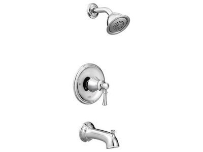 Moen®, T2183, Trim, Series: T2183, Dartmoor™ Collection, 2.5 gpm Shower Flow Rate, Slip-Fit Diverter Spout, 7-3/8 in Spout Reach, 1 Handles, Metal Lever Handle, 6-3/4 in Dia Trim, 1222 Pressure Balanced, Spray Pattern: Full Body, 1 Spray Functions, Wall Mounting, Chrome, 6-3/4 in W x 4 in D x 6-3/4 in H Dimensions, Domestic
