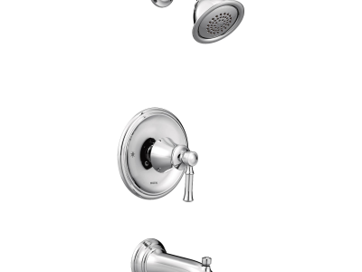 In scale and in style, the Dartmoor collection of bath faucets and accessories is designed to delight. A gently flared spout is generously sized, adding beauty and function at the sink. Sculpted handles and finial detailing create a tailored look that's thoroughly classic. This trim kit requires MOEN valve 2510, 2520, 2570, or 2590 to complete installation.