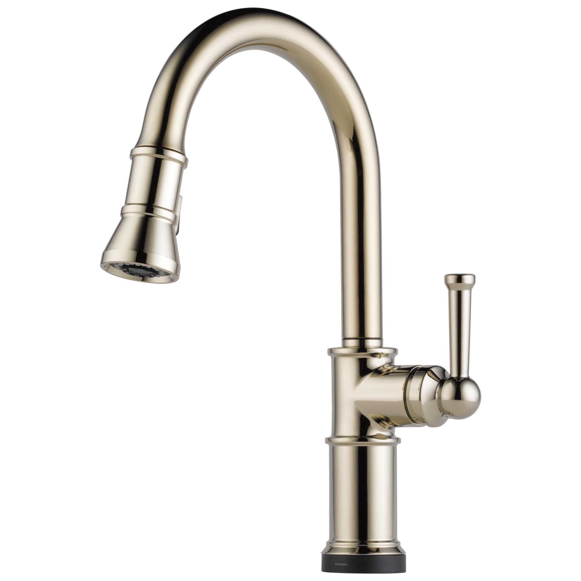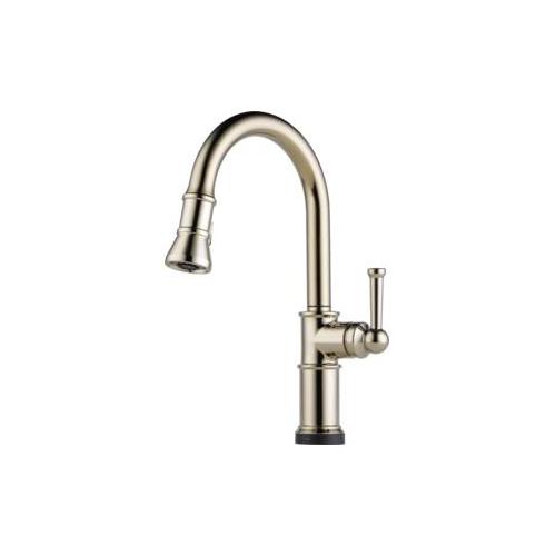 Brizo® Kitchen Faucet, Artesso®, 1.8 gpm, 8 in Center Distance, Pull-Down Diverter Spout, 8-3/4 in Spout Reach, 15-21/32 in Spout Height, Lever, 1 Handles, 1 Faucet Holes, 3/8 in, Compression, Spray Pattern: Aerated Stream/Full Body, Function: Traditional, 2 Spray Functions, 3 in Maximum Deck Thickness, Deck Mount, Electronic Valve/Cartridge, Polished Nickel, Commercial