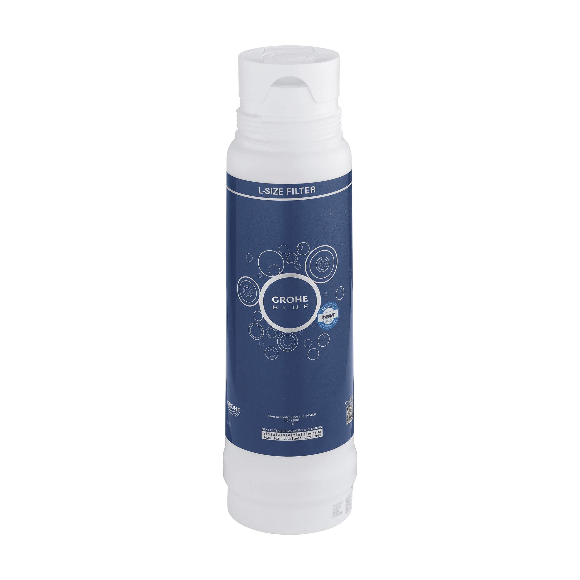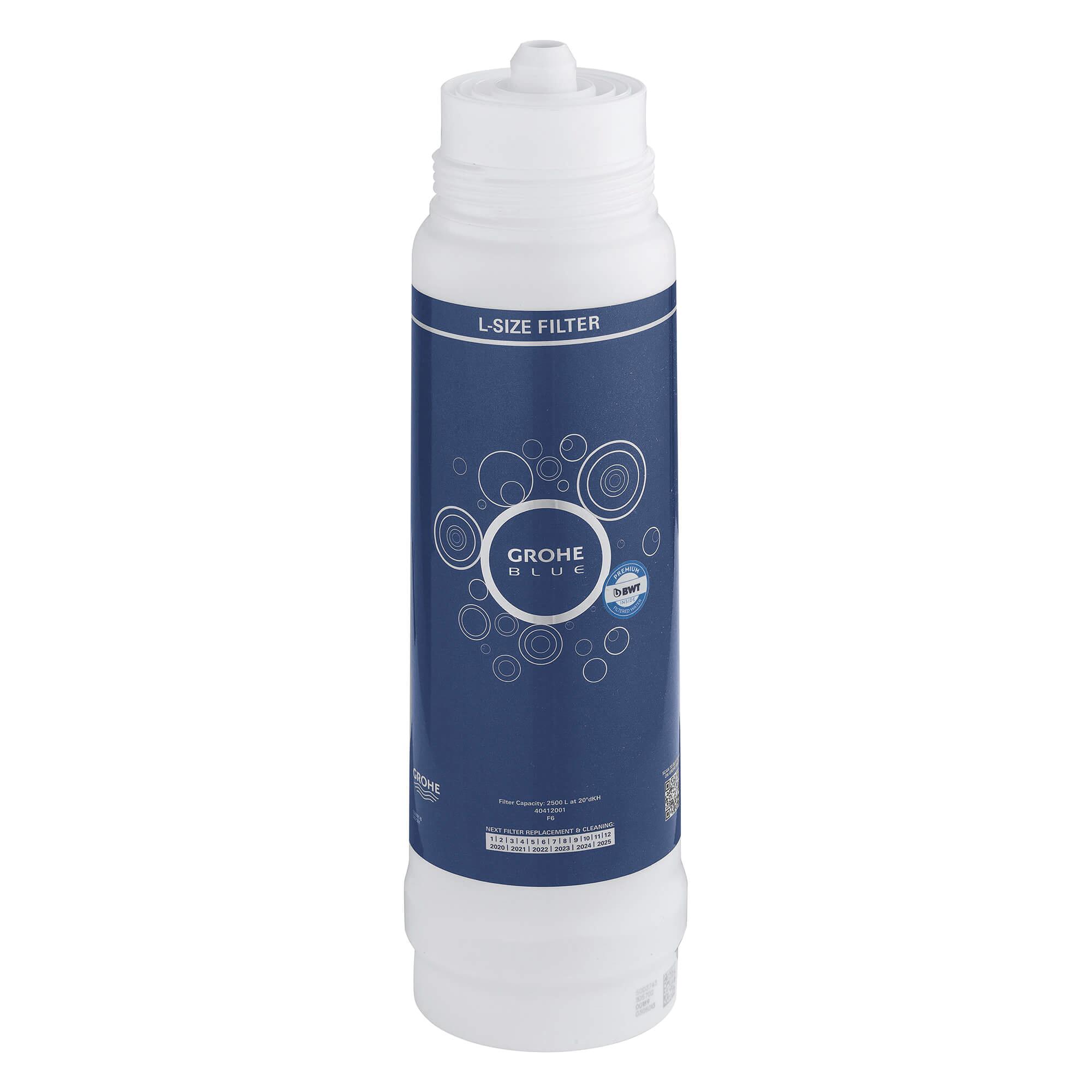Instant access to great-tasting water from the convenience of your kitchen faucet whenever you want it - 24 hr a day, 7 days a week. The 5-stage GROHE Blue® 792.5 gal filter, with technology by BWT, removes all unwanted substances that will affect taste and smell of the water. It also eliminates chlorine, limescale, heavy metals and particles for a pure and fresh water taste.