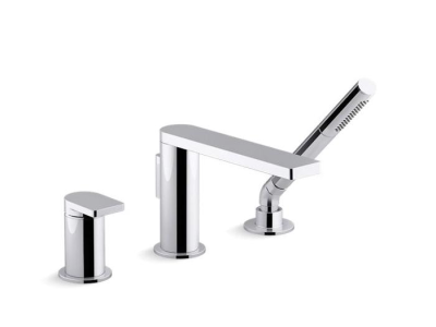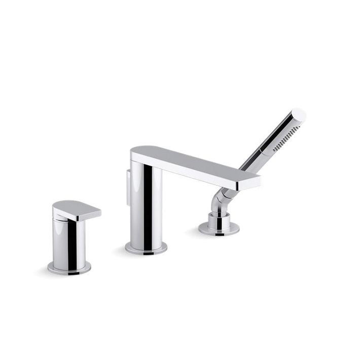 Kohler® Bath Tub Faucet, Composed®, 8 gpm, Diverter Spout, 8-1/4 in Spout Reach, 5-13/16 in Spout Height, 60 in Hose, Metal Lever, 1 Handles, 3 Faucet Holes, Function: Traditional, 1 Spray Functions, Hand Shower Yes/No: Yes, 3 in Maximum Deck Thickness, Deck/Bath Mount, Ceramic Disc Valve/Cartridge, Metal, Polished Chrome, Import