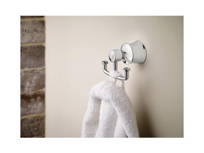 Moen®, YB2103CH, Robe Hook, Dartmoor™ Collection, 2 Hooks, 3 in Overall Width, 2.41 in Overall Depth, 1.63 in Overall Height, Wall Mounting, Chrome, Import