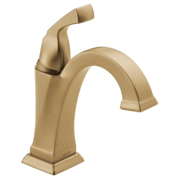 DELTA® Centerset Lavatory Faucet, Dryden™ Collection, 1.2 gpm Flow Rate, Rigid Spout, 5-3/8 in Spout Reach, 3-7/8 in Spout Height, Lever Handle, 1 Handles, Pop-Up Drain, 1/3 Faucet Holes, 3/8 in Connection, Compression Connection, Function: Traditional, 2-7/8 in Maximum Deck Thickness, Deck Mounting, DIAMOND™ Seal Valve, 8-5/16 in H Dimensions, Brass, Champagne Bronze, Commercial Commercial/Residential