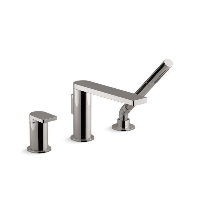 Kohler® Bath Tub Faucet, Composed®, 8 gpm, Diverter Spout, 8-1/4 in Spout Reach, 5-13/16 in Spout Height, 60 in Hose, Metal Lever, 1 Handles, 3 Faucet Holes, Function: Traditional, 1 Spray Functions, Hand Shower Yes/No: Yes, 3 in Maximum Deck Thickness, Deck/Bath Mount, Ceramic Disc Valve/Cartridge, Metal, Vibrant® Titanium, Import
