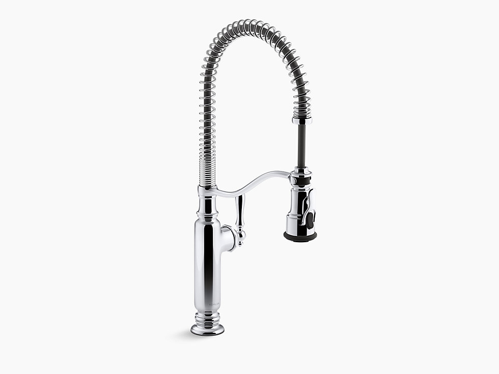 Designed with ambitious home chefs in mind, the KOHLER® Tournant semi-professional kitchen sink faucet delivers elegant styling and professional performance to your kitchen. A unique three-function deck-mount kitchen faucet sprayhead lets you speed through a range of tasks: BerrySoft® spray for food prep; an aerated stream for filling pots and pitchers; and Sweep® spray for cleaning. The high-arching coil spring removes for easy cleaning.