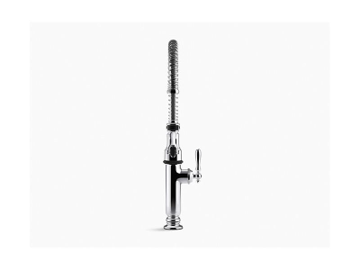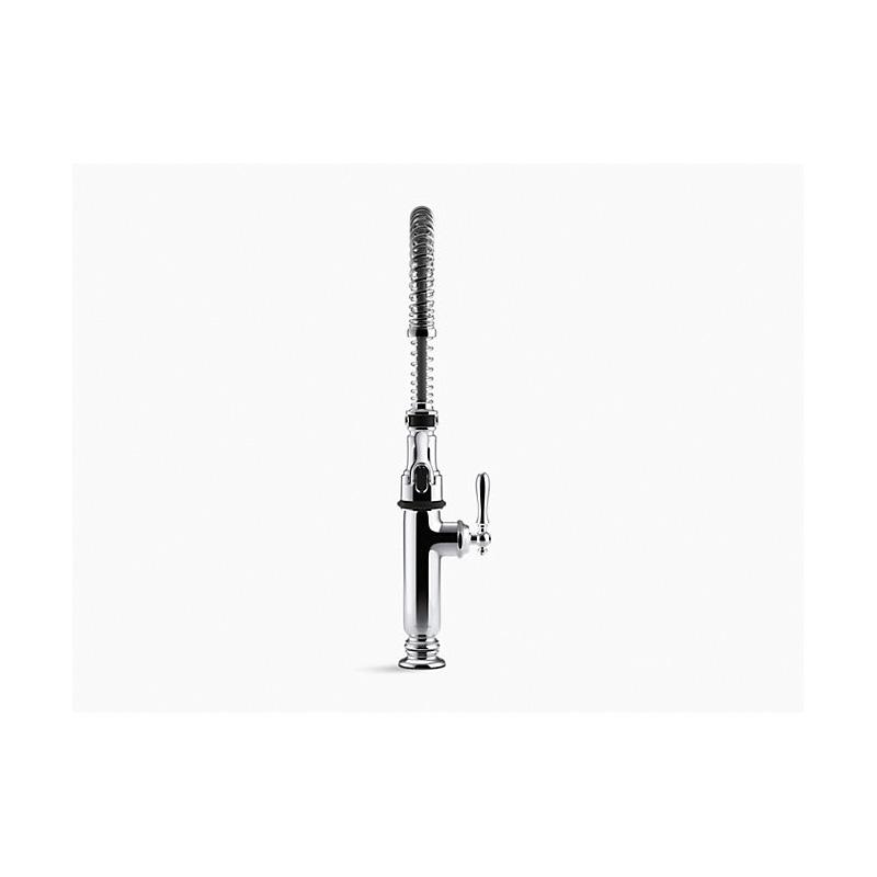 Kohler®, 77515-CP, Tournant® Kitchen Sink Faucet, Semi-Professional, Series: 77515, Tournant® Collection, 1.5 gpm Flow Rate, High-Arc Swivel Spout, 10 in Spout Reach, 9-1/2 in Spout Height, Lever Handle, 1 Handles, 1 Faucet Holes, 1-5/16 in Dia Faucet Hole, 3/8 in Connection, Compression Connection, Spray Pattern: Aerated Stream/BerrySoft/Sweep, Function: Traditional, 3 Spray Functions, 2-11/16 in Maximum Deck Thickness, Deck Mounting, Ceramic Disc, 10 in L x 2-9/16 in W x 24-9/16 in H Dimensions, Metal, Polished Chrome