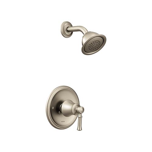 Moen®, T2182BN, Trim, Series: T2182, Dartmoor™ Collection, 2.5 gpm Shower Flow Rate, 1 Handles, Lever Handle, 6-3/4 in Dia Trim, 1222 Pressure Balanced, Spray Pattern: Full, 1 Spray Functions, Wall Mounting, Metal, Brushed Nickel, 6-3/4 in W x 4 in D x 6-3/4 in H Dimensions, Domestic