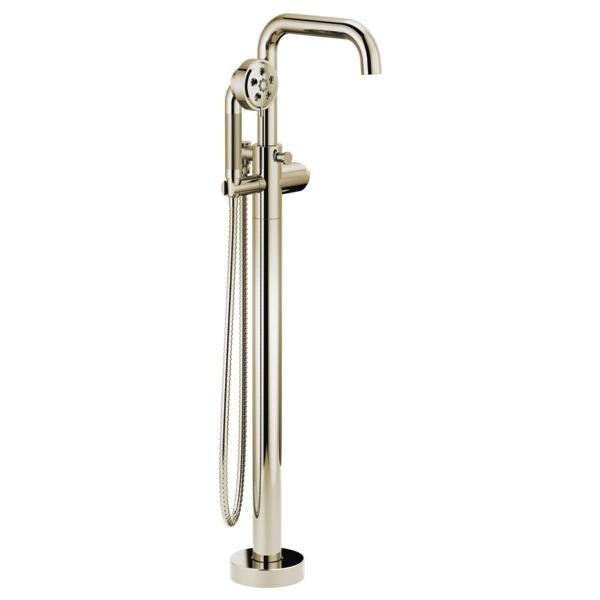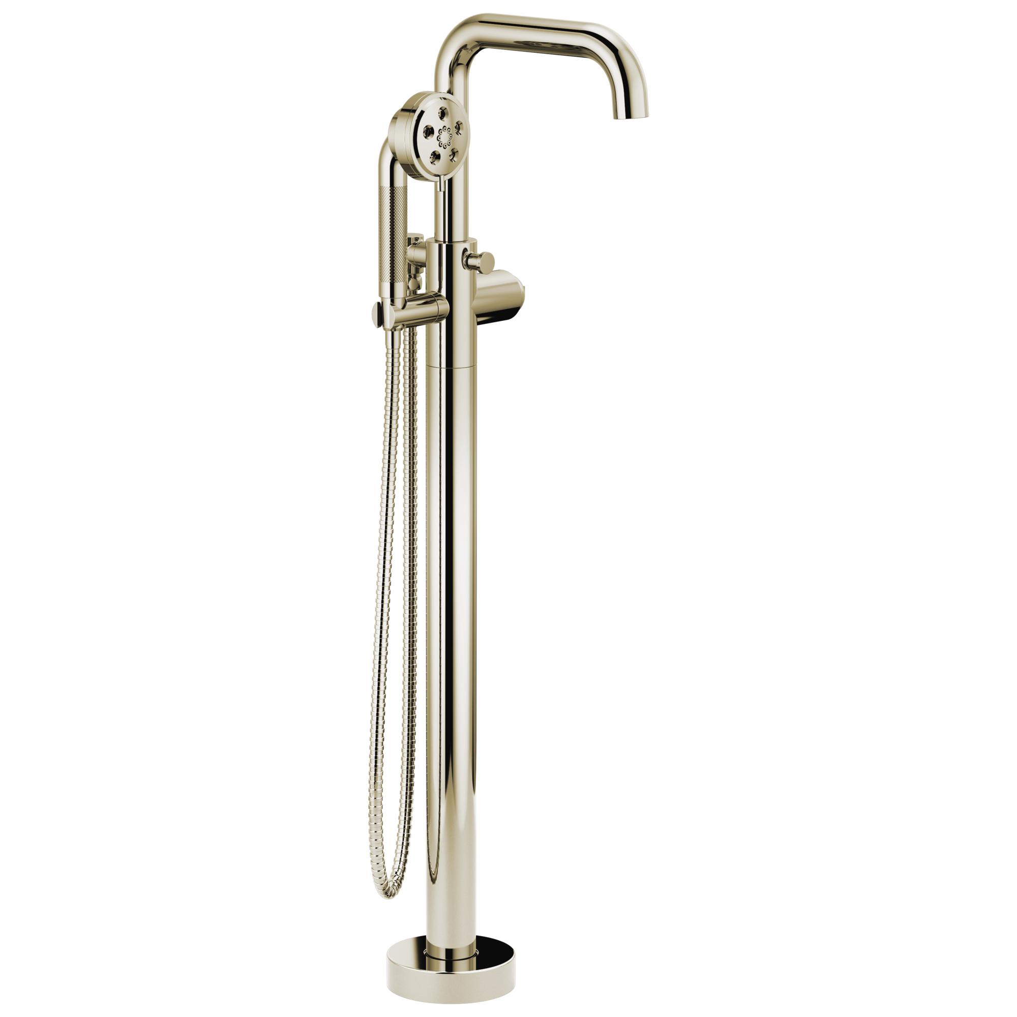 Brizo® Tub Filler, Free Standing, Litze™, 2 gpm, 9-1/4 in Spout Reach, 36-5/16 in Spout Height, 60 to 82 in Hose, 1 Faucet Holes, Hand Shower: Yes, Ceramic Disc, 39-3/4 in H, Solid Brass, Polished Nickel, Domestic