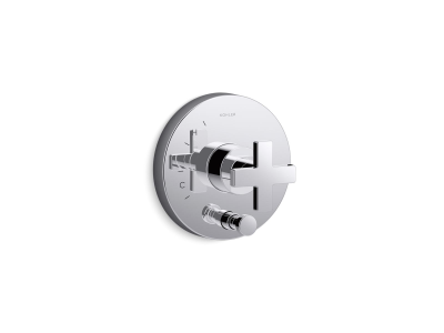 Kohler®, T73117-3-CP, Valve Trim, Composed® Rite-Temp® Collection, 1 Handles, Metal Cross Handle, 6-3/8 in Dia x 4-1/8 in D Trim, Hand Shower: No, Wall Mounting, Polished Chrome