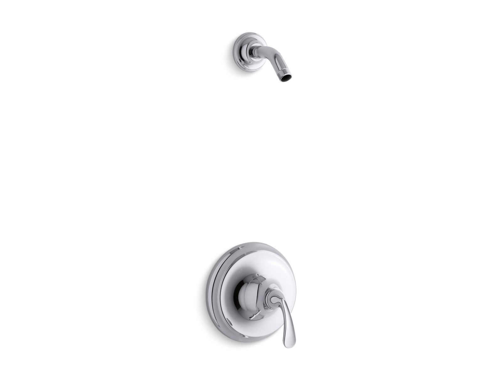 Kohler® Shower Valve Trim, Forte® Rite-Temp®, 1 Handles, Sculpted Metal Lever, 6-3/8 in Dia x 5 in D Trim, Pressure Balanced Valve/Cartridge, Hand Shower Yes/No: No, For Use with: Kohler® Shower Head, Polished Chrome